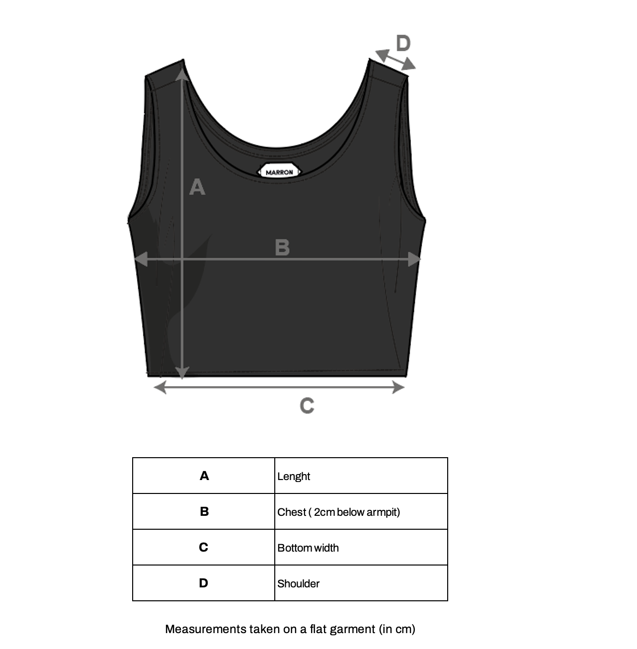 All measurements on our product pages are taken flat on the garment, in centimeters.
